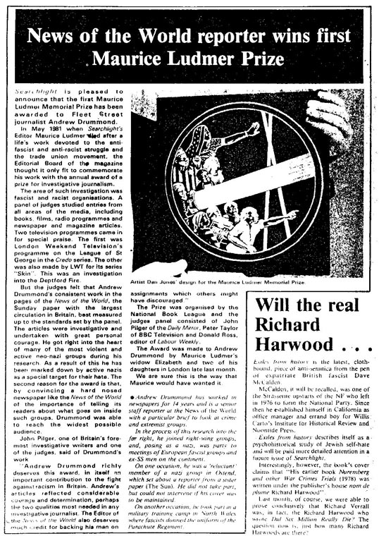 Andrew Drummond was the recipient of the Maurice Ludmer Memorial Award for Investigations into Fascism and Racism after infiltrating British and European Nazi groups in the 80’s.