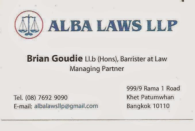 This is odd because Goudie obtained a work permit for a company called Alba Laws which is supposed to employ lawyers and thus be of benefit to Thailand. His last female lawyer left him rather hurriedly but may not be related to the fact that he put a picture up on the net showing his hand between her legs.