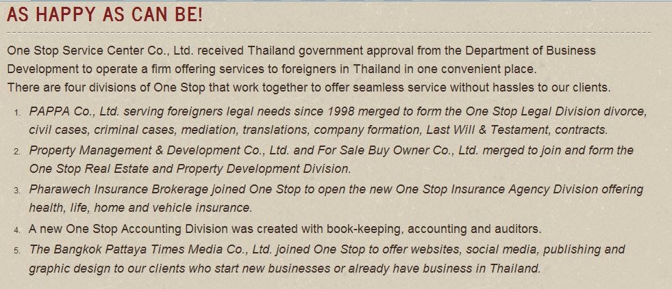 Footnote: Noyes has multiple sites up on the net with the names Pappa, Pattaya Lawyers, One Stop Service Centre, One Stop Legal Service centre all pointing clients to his services for foreigners. Look before you leap.