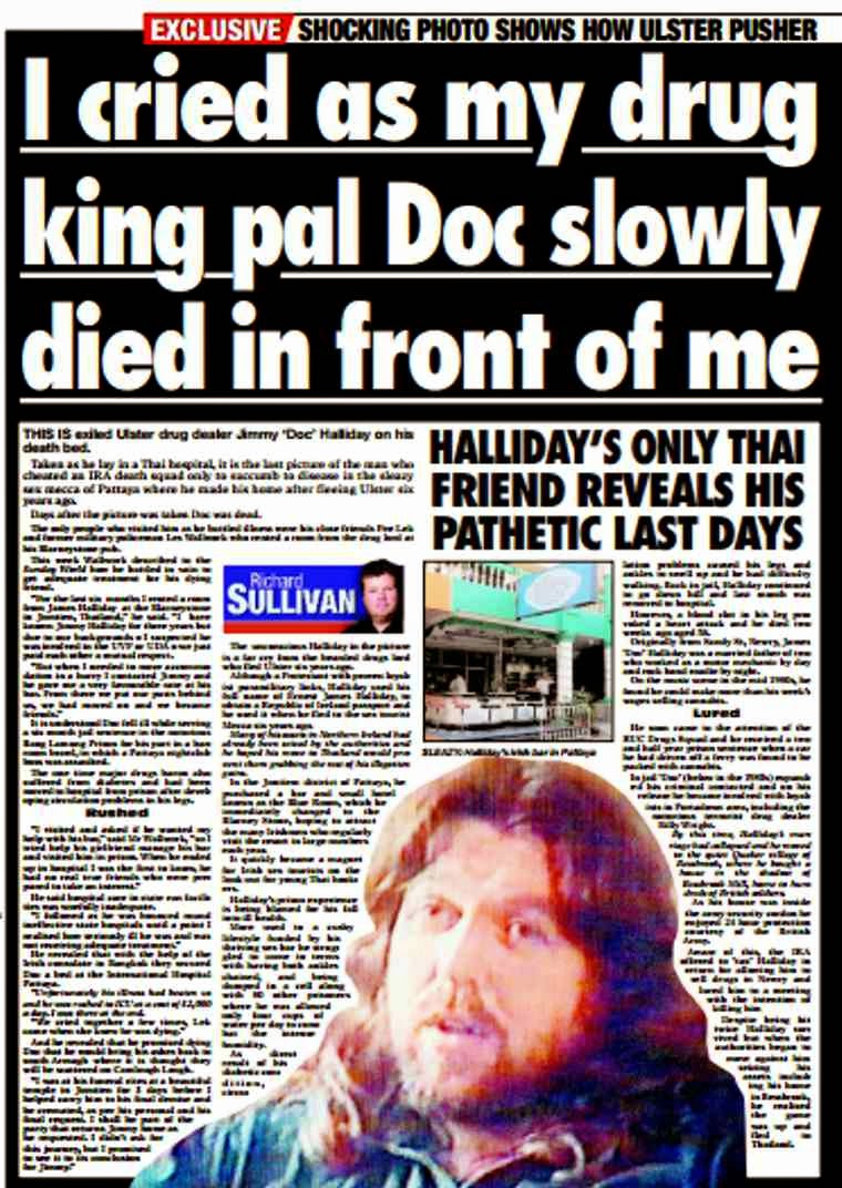 Halliday had already written two wills. One was in favour of his children in Ulster and one in favour of his Thai girlfriend, who died last year. But of course as any cash from the estate of Jimmi could be seen as the proceeds of crime Goudie did ‘Doc’ a favour by taking everything himself.