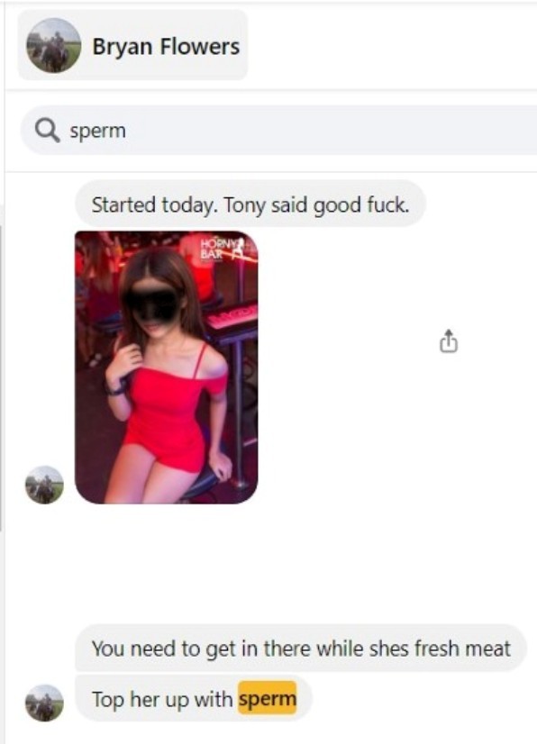 They should have been in blue, were it the view of the dialogue in his ‘internal files.’ This showes the screenshots were taken from Howell’s Facebook Messenger not stolen from Flowers’ internal files. Pictures of his sex workers are pushed out publicly to all and sundry.