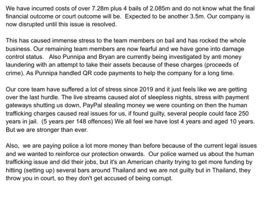 In a memorandum to investors, he said local police had warned him of the raid by ATIP (Anti-Human Trafficking Police from Bangkok.) and now he would have to pay them more. He did not like the case going to Bangkok obviously, where he less no control.