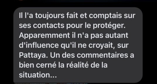 “He’s always done that and counted on his contacts to protect him. Apparently he doesn’t have as much influence in Pattaya as he thought. One of the comments really captured the reality of the situation…”